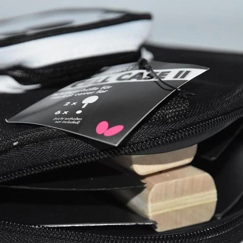 High quality racket cover Butterfly CELL CASE II for 2 rackets and 6 balls, rectangular, nylon 600 D, innovative and extraordinary shape, incl. useful hang up loop.