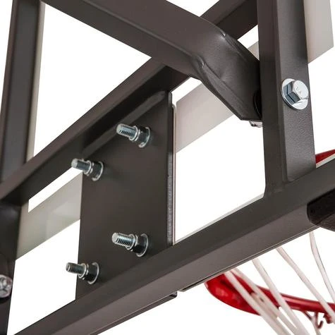 The basketball hoop system comes partially pre-assembled and with pre-mounted fittings and pro-style, breakaway hoop, which makes installing the system a whole lot easier. The spring-activated basketball hoop bends under stress to ensure the safety of players and the backboard.