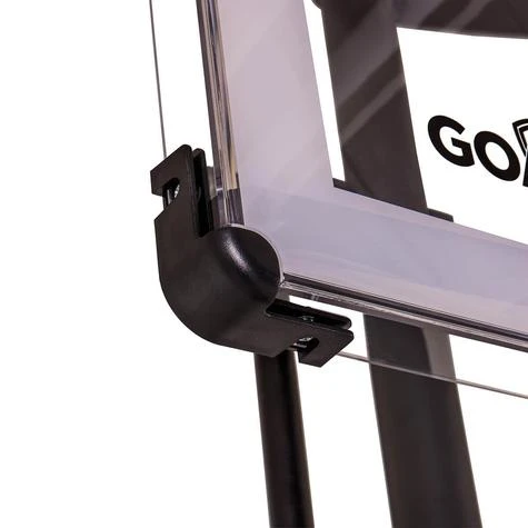 The special Stability-Strength technology anchors the GoTek54 directly in the ground with concrete for the highest level of stability and rigidity. The 137 x 84 cm (W x H) Infinity Edge backboard features brackets on the four corners that converge on the back of the board for additional stability.